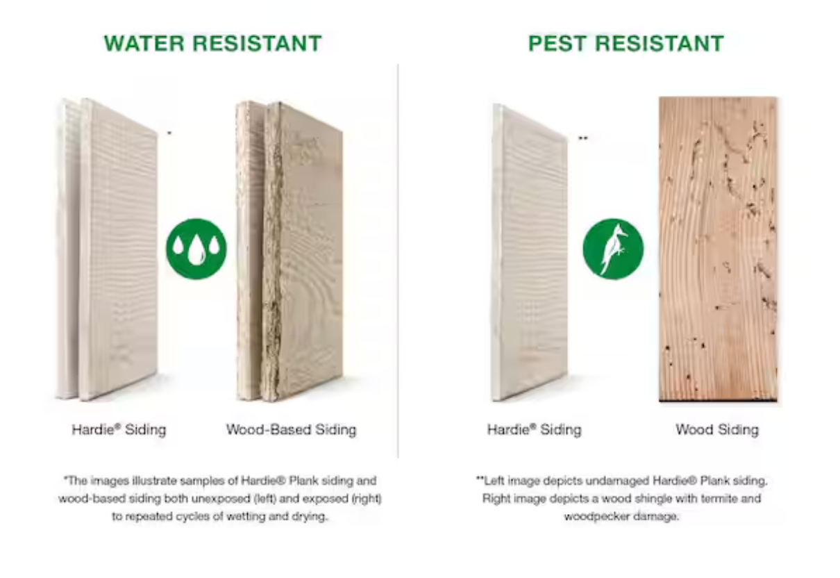 Fiber cement siding is non-combustible and impervious to termites and wood-boring insects. Combined with proper flashing and moisture management, it provides superior protection compared to vinyl or wood alternatives.